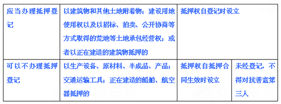[解析]:学校教育设施不得做抵押。关于抵押财产登记的有关规定如下表: