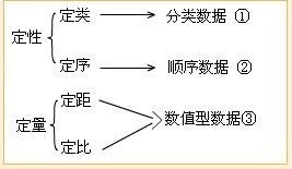 9.统计数据的类型:分类数据、顺序数据、数值型数据(分类数据和顺序数据是定性数据或品质数据,数值型数据是定量数据或数量数据)