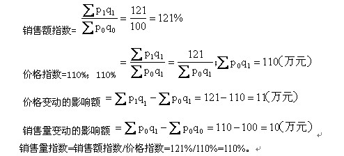 A.商品销售量指数为110% B.商品销售额指数为121%