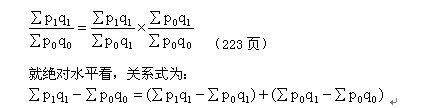 在实际分析中,比较常用的是基期权数加权的数量指数和报告期权数加权的质量指数形成的指数体系。该指数体系可表示为: