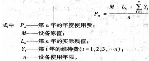 面值法是以同类型设备的统计资料为依据,分析计算其年度使用费用,以确定设备最佳更新期的一种方法。它适用于精密仪器等高、精、尖的设备。计算公式如下:
