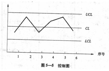 控制图又被称为管理图。由于控制图用法简单、效果良好且便于掌握,因而逐渐成为质量管理中的一种重要工具。控制图的基本形式如图5-5所示。