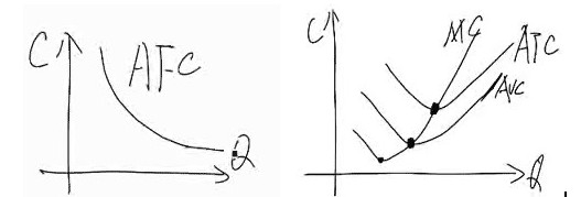 (1)平均固定成本曲线随产量的增加而下降,逐渐接近横轴。