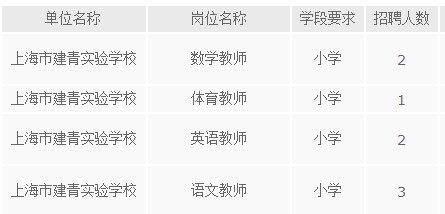 上海市长宁区建青实验学校2013年招聘8名小学教师公告