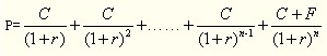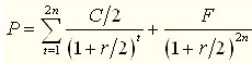 式中,P为债券价格,C为债券的年付息额,F为面值,r为到期收益率,n为期限.