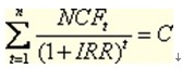 计算内含报酬率(以IRR表示)的公式如下: