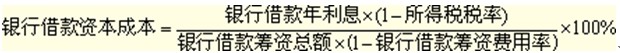 (1)银行借款资本成本。银行借款资本成本是指借款利息和筹资费用。借款利息计入税前成本费用,可以起到抵税的作用。因此,一次还本、分期付息借款的资本成本为: