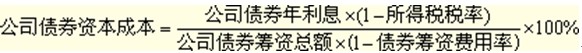 (2)公司债券资本成本。如果企业发行债券,其资本成本的计算与借款成本的计算基本相同,也应当计算税后成本。按照一次还本、分期付息的方式,债券资本成本的计算公式为:
