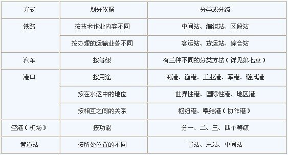 按照运输方式的多少可以分为:综合性运输枢纽和方式性运输枢纽。
