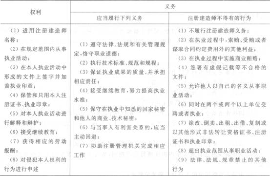 8.建造师的基本权利和义务见下表。