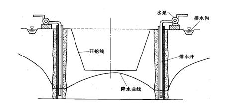 答:管井降水,是在基坑周围布置一些单独工作的管井,地下水在重力作用下流入井中,用抽水设备将水抽走(见图17.1)。