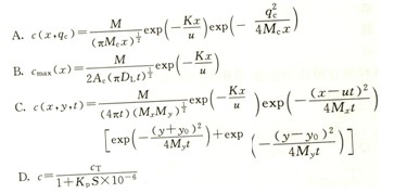 那么,在距离瞬时点源下游。处的污染物浓度峰值表达式为(B)。