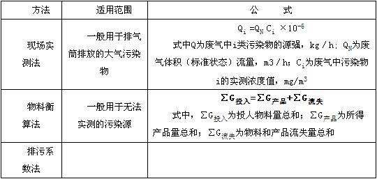 大气污染源调查方法一般有三种:现场实测法、物料衡算法、排污系数法,见表4-4.