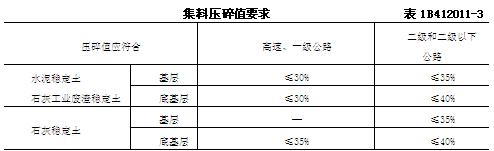 3.粉煤灰:粉煤灰中SiO2、Al2O3和Fe2O3的总含量应大于70%,粉煤灰的烧失量不应超过20%;粉煤灰的比表面积宜大于2500c㎡/g(或90%通过0.3mm筛孔,70%通过0.075mm筛孔)。干粉煤灰和湿粉煤灰都可以应用。湿粉煤灰的含水量不宜超过35%. 4.集料:集料除应符合表1B412011-3压碎值要求,还要满足级配要求的规定。集料单个颗粒的最大粒径应符合表1B412011-4的要求。