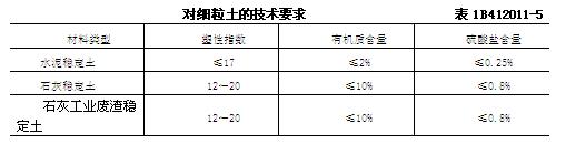 5. 无机结合料稳定细粒土时,细粒土应符合表1B412011-5的要求。