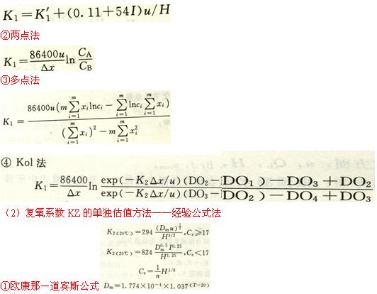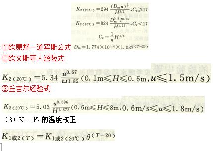 (2)复氧系数KZ的单独估值方法——经验公式法