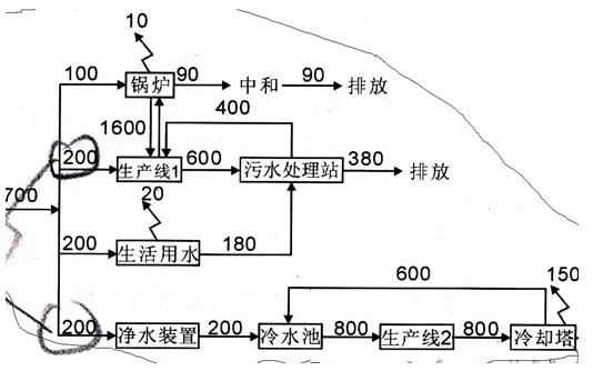 工艺水回用量为400 600=1000,工艺水取水量为200 200=400
