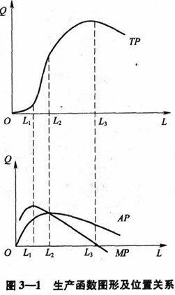 我们将总产量、平均产量和边际产量曲线的图形画成图3—1的形式,下面分别给出其解释,并说明曲线的位置关系。