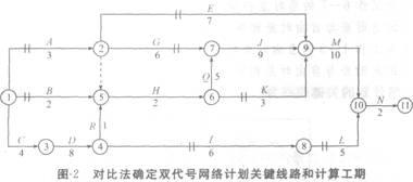 二、用对比法确定双代号网络计划关键线路和计算工期
