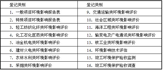 环境影响评价工程师职业资格登记类别表